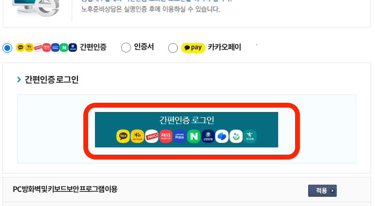 ๋ก๊ทธ์ธ์ ๊ฐํธ์ธ์ฆ(๋ฏผ๊ฐ์ธ์ฆ์) / ๊ณต์ธ์ธ์ฆ์ / ์นด์นด์คํ์ด ์ธ๊ฐ์ง ๋ฐฉ๋ฒ ์ค ํธํ ๋ฐฉ๋ฒ์ผ๋ก ์ด์ฉํ๋ฉด ๋ฉ๋๋ค.