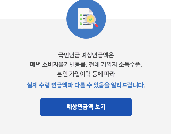 ๊ตญ๋ฏผ์ฐ๊ธ ์์์ฐ๊ธ์ก์ ํด๋ง๋ค ๋ฌผ๊ฐ๋ณ๋๋ฅ ์ ๋ฐ์ํ๋ค๋ ํ์ ์ฐฝ ํ์ธ ํ, '์์์ฐ๊ธ์ก๋ณด๊ธฐ' ๋ฒํผ์ ์ ํํ๋ฉด ์๋ํ๋ฉด์ฒ๋ผ ์กฐํ๊ฐ ๊ฐ๋ฅํฉ๋๋ค.
