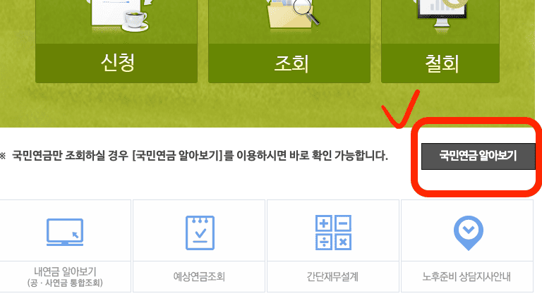 : ๋ชจ๋ฐ์ผ ์ฑ์์๋ ํ๋ฉด์์ ‘๋ด ๊ณ์ ๊ตญ๋ฏผ์ฐ๊ธ’ → ์ ์ฒด ๋ฉ๋ด → ์์๋ ธ๋ น์ฐ๊ธ ์์ฐจ์ ์ผ๋ก ์ ํํ์๋ฉด ์ ์์ด ๊ฐ๋ฅํฉ๋๋ค.