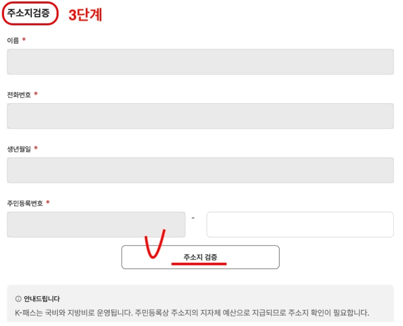 โ€ป K-ํŒจ์Šค ํ™ˆํŽ˜์ด์ง€๋‚˜ ์•ฑ์—์„œ ๋ฐœ๊ธ‰๋ฐ›์€ ์นด๋“œ๋ฅผ ๋“ฑ๋กํ•ด์•ผ ํ™˜๊ธ‰ํ˜œํƒ์„ ๋ฐ›์„ ์ˆ˜ ์žˆ์Šต๋‹ˆ๋‹ค.