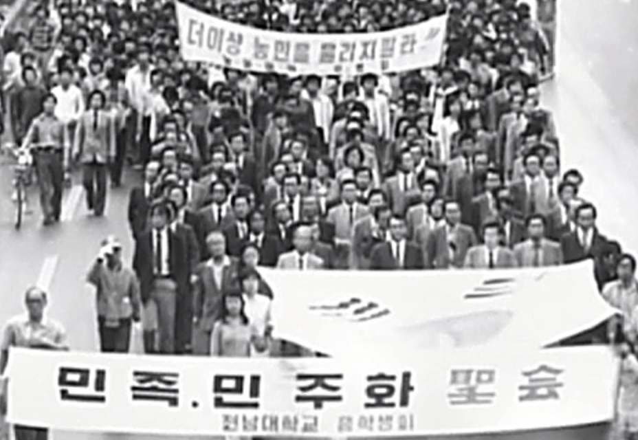 - ๋ด์ฉ: ๋ชจ๋ ์ ์น ํ๋์ด ๊ธ์ง๋๊ณ , ๋ํ์ ํ์ํ๋ฉฐ ๊ฐ์์ ์ธ ํต์น๊ฐ ์ด๋ฃจ์ด์ก์ต๋๋ค. ํนํ ๊ด์ฃผ์์ ๋ฏผ์ฃผํ๋ฅผ ์๊ตฌํ๋ ์๋ฏผ๋ค์ ๊ฐ๊ฒฝ ์ง์ํ๋ฉด์ ๊ด์ฃผ ๋ฏผ์ฃผํ ์ด๋์ด ๋ฐ์ํ์ต๋๋ค.